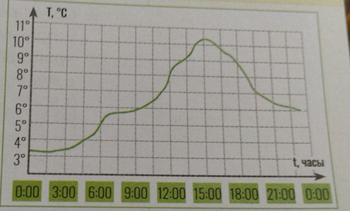 На рисунке 18 дан график изменения температуры воздуха в течение дня. Определите наивысшую и наименьшую температуру в °С.