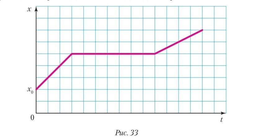 СРОЧНО 50 БАЛОВ Координата движущегося вездехода зависит от времени так, как изображено на рисунке 33. Постройте график зависимости проекции скорости движения вездехода от времени