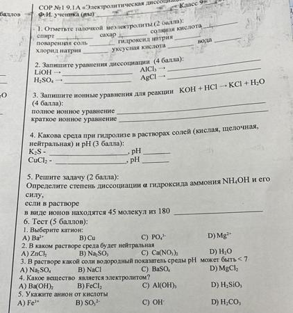 4. Какова среда при гидролизе в растворах солей (кислая, щелочная,