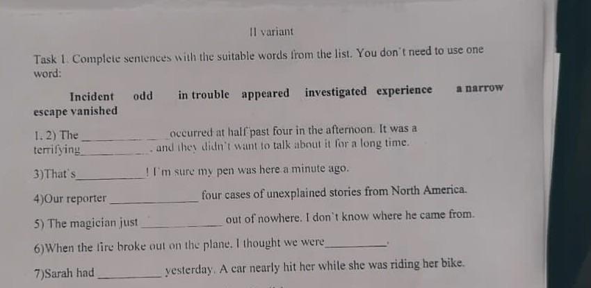 Sarah had a narrow escape yesterday. A car nearly hit her when she was riding a bike.