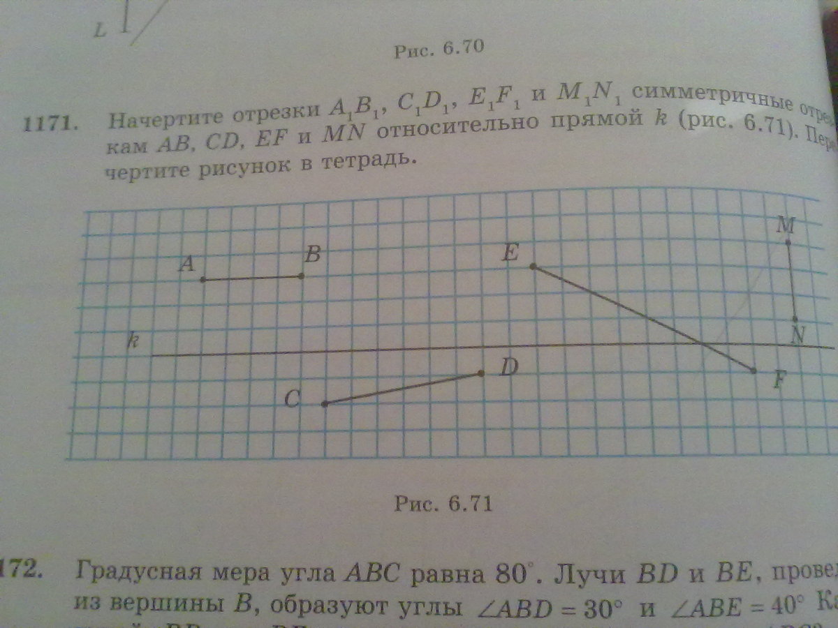 1Фото) Начертите отрезки A1 B1 C1 D1 E1 F1 M1 N1 симметричные отрезкам AB,CD, EF,MN относительно прямой К .