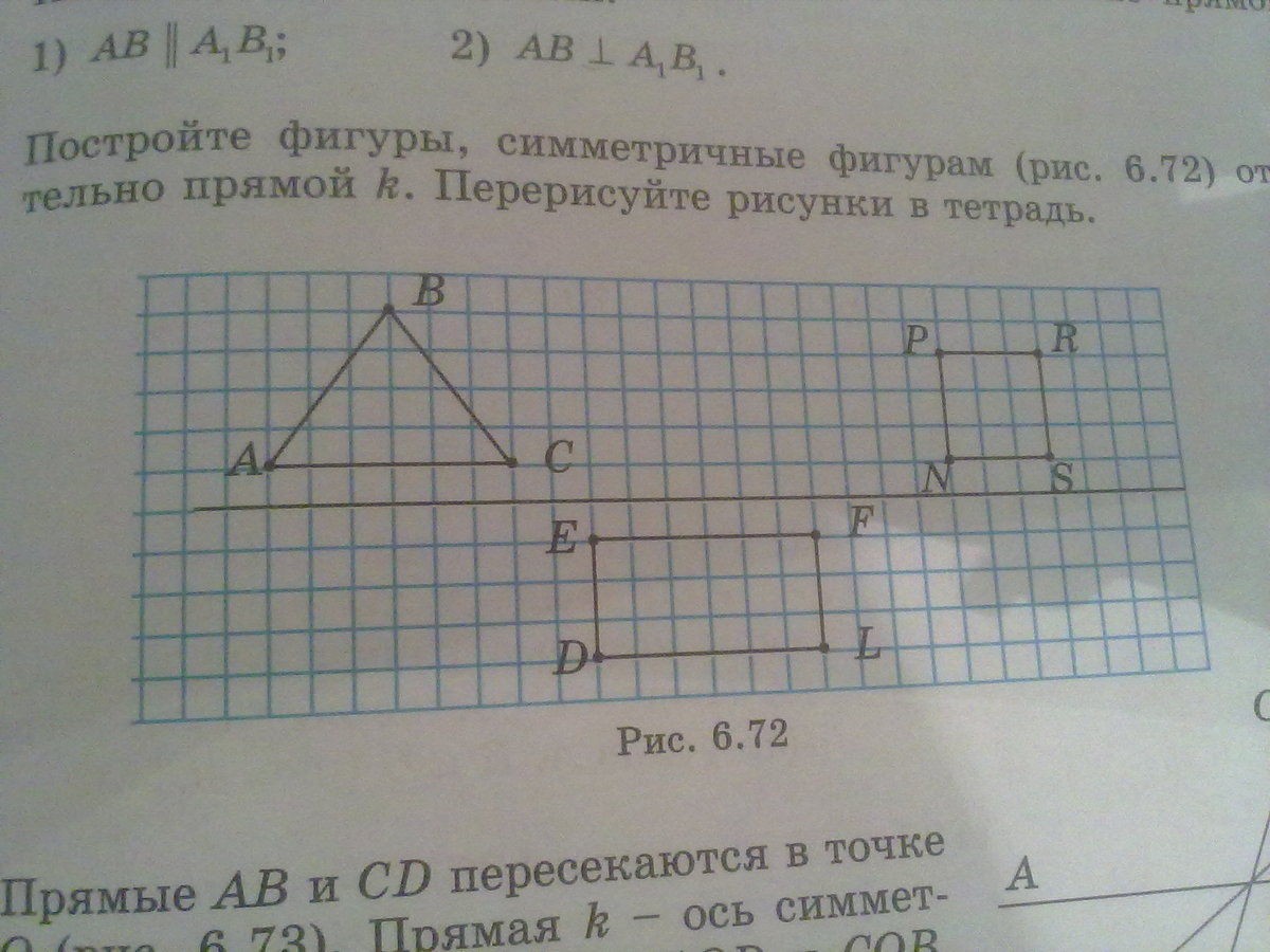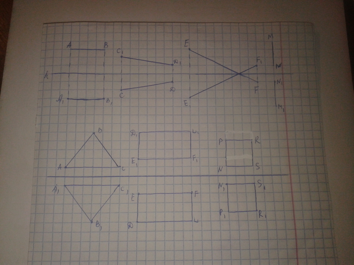2 Фото) Постройте фигуры симметричные фигурам относительно прямой К.