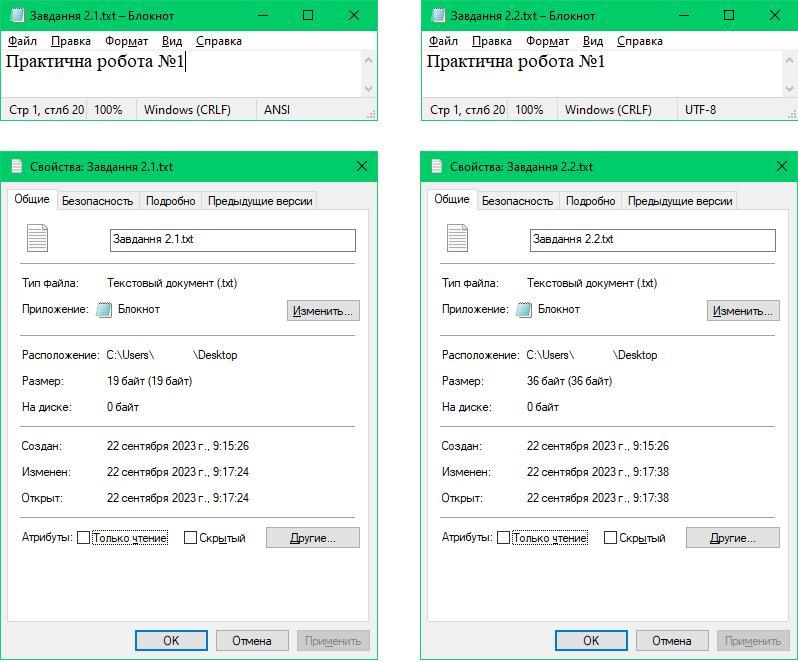 2. Визначте, використовуючи текстовий редактор Блокнот, довжину двійкового коду повідомлення «Практична робота №1» за умови, що повідомлення закодоване з використанням таблиці кодів символів: