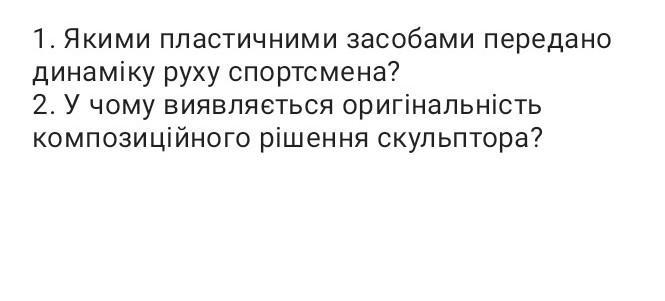 1. Динаміку руху спортсмена можна передати за допомогою пластичних засобів, таких як лінії, форми, пропорції та різні текстурні рішення, що відтворюють рухливість тіла.