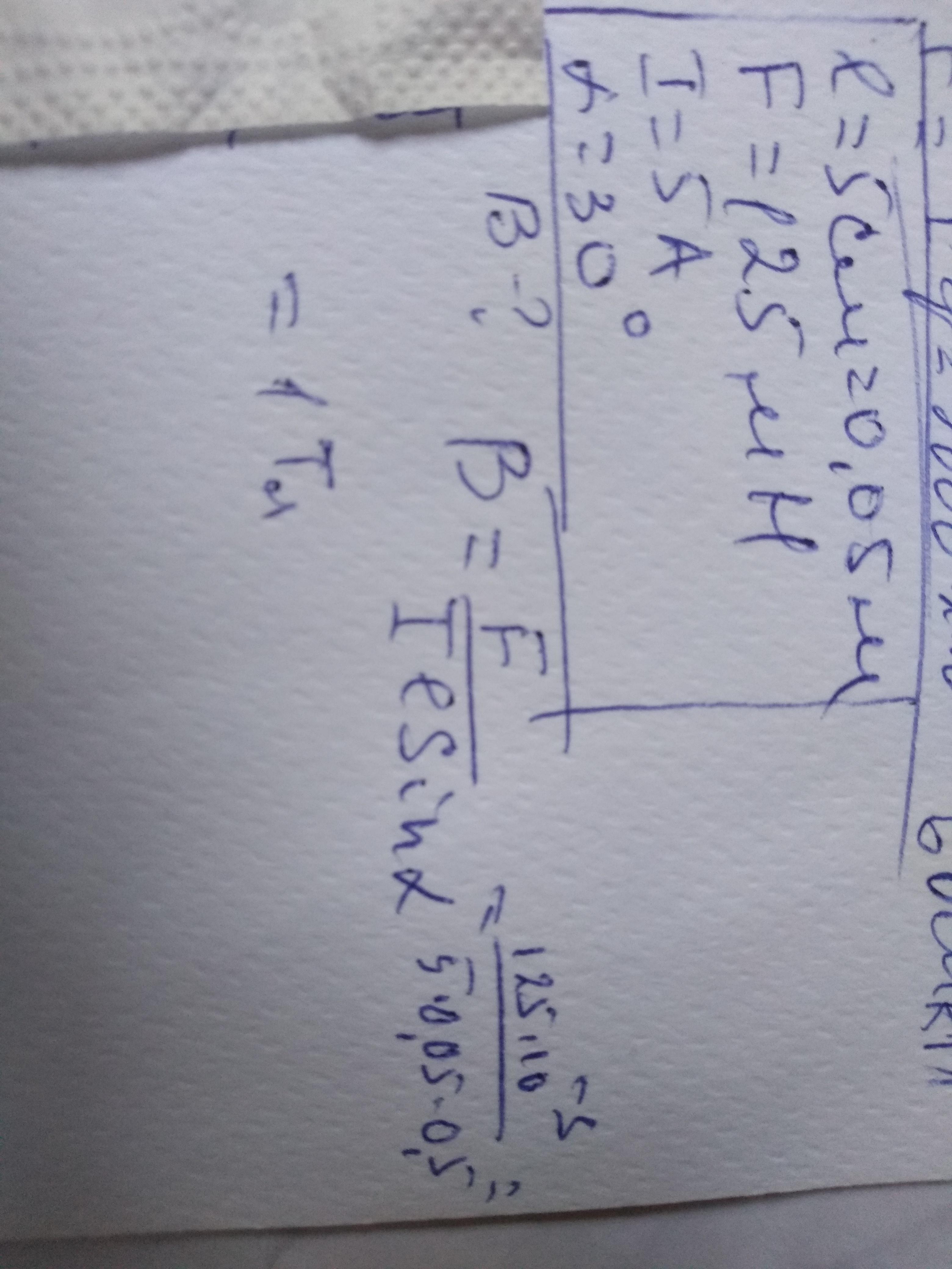 знайти індукцію магнітного поля, в якому на провідник з довжиною активної частини 5 см діє сила 125 мН. сила струму в провіднику 5 А. Провідник розміщено під кутом 30 градусів до індукції магнітного поля