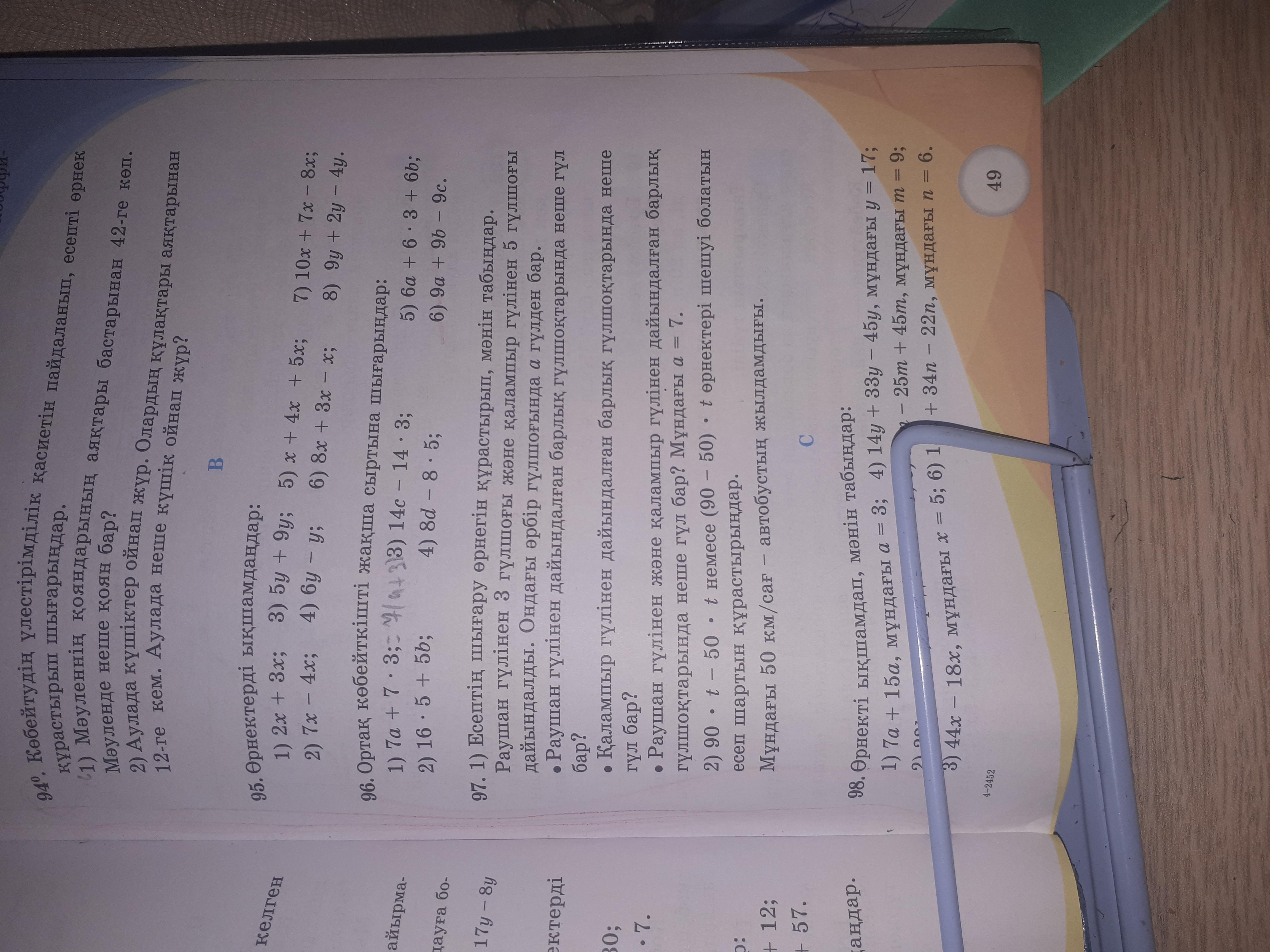 97. 1) Есептің шығару өрнегін құрастырып, мәнін табыңдар. Раушан гүлінен 3 гүлшоғы және қалампыр гүлінен 5гүлшоғы