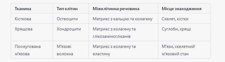 Особливості будови 7. Заповніть порівняльну таблицю тканин. Клітини | Міжклітинна речовина Місце- 1 знаходження Кісткова 2 За результатами дослідження Тканина Хрящова 3 Посмугована м'язова