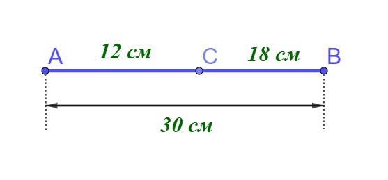 На прямій дано три точки А, В і С. Відомо, що АВ=30см, АС=12см, СВ=18см.Яка