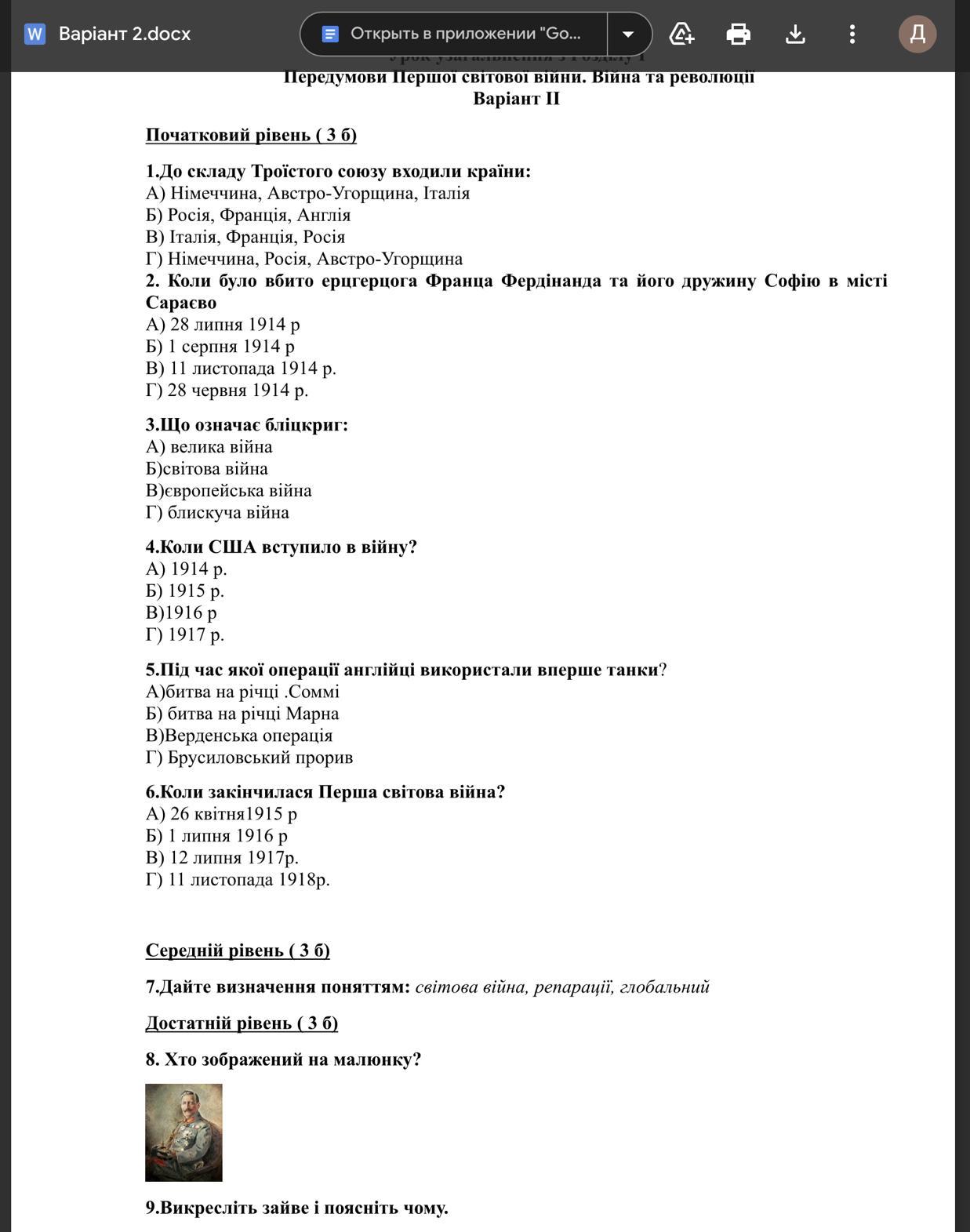 7.Світова́ війна́ — глобальне протиборство коаліцій держав із застосуванням засобів збройного насильства, що охоплює велику частину країн світу.