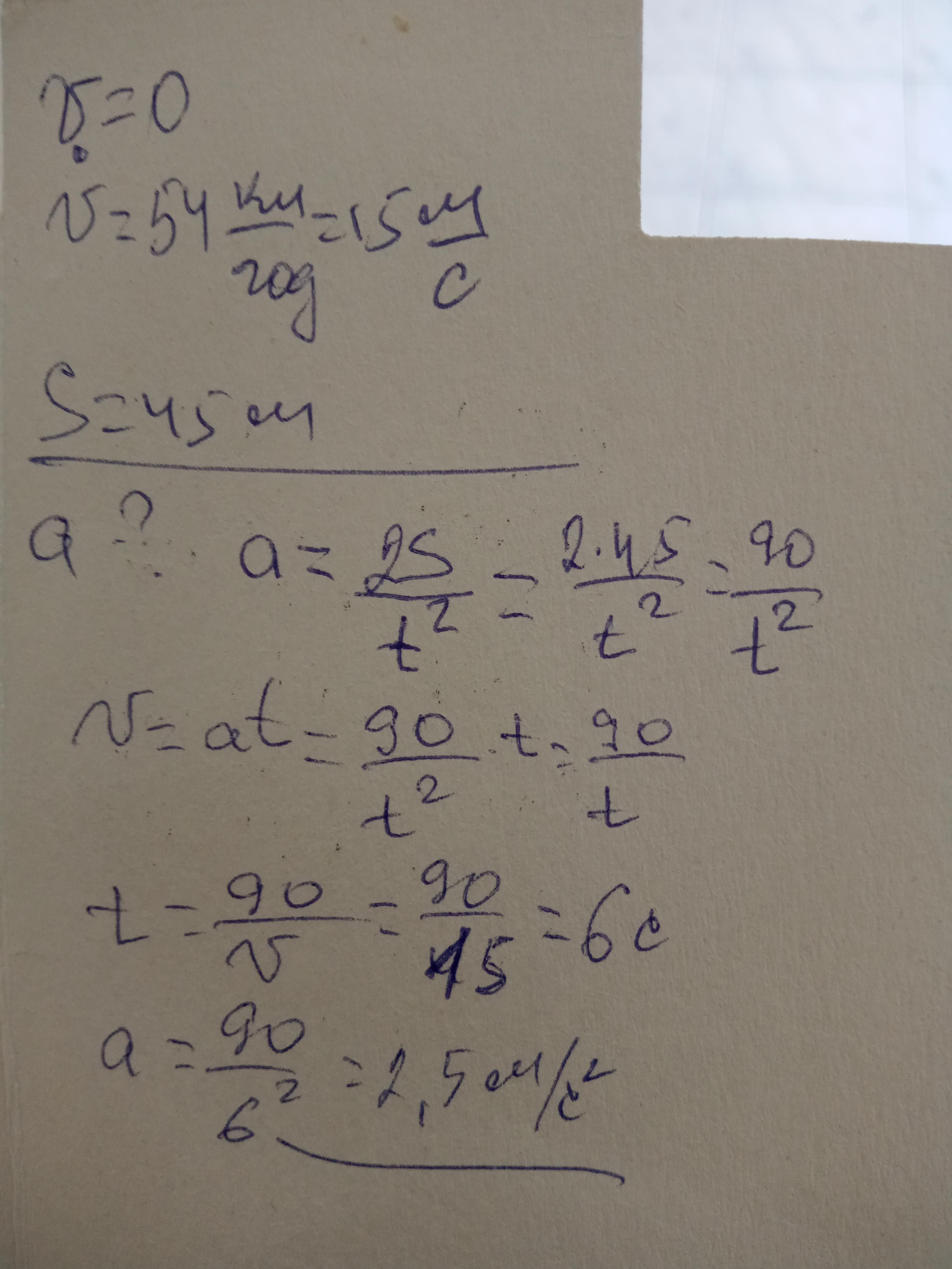 54 км/год на шляху 45 м. З яким прискоренням він рухався? З МАЛЮНКОМ МОЛЮ