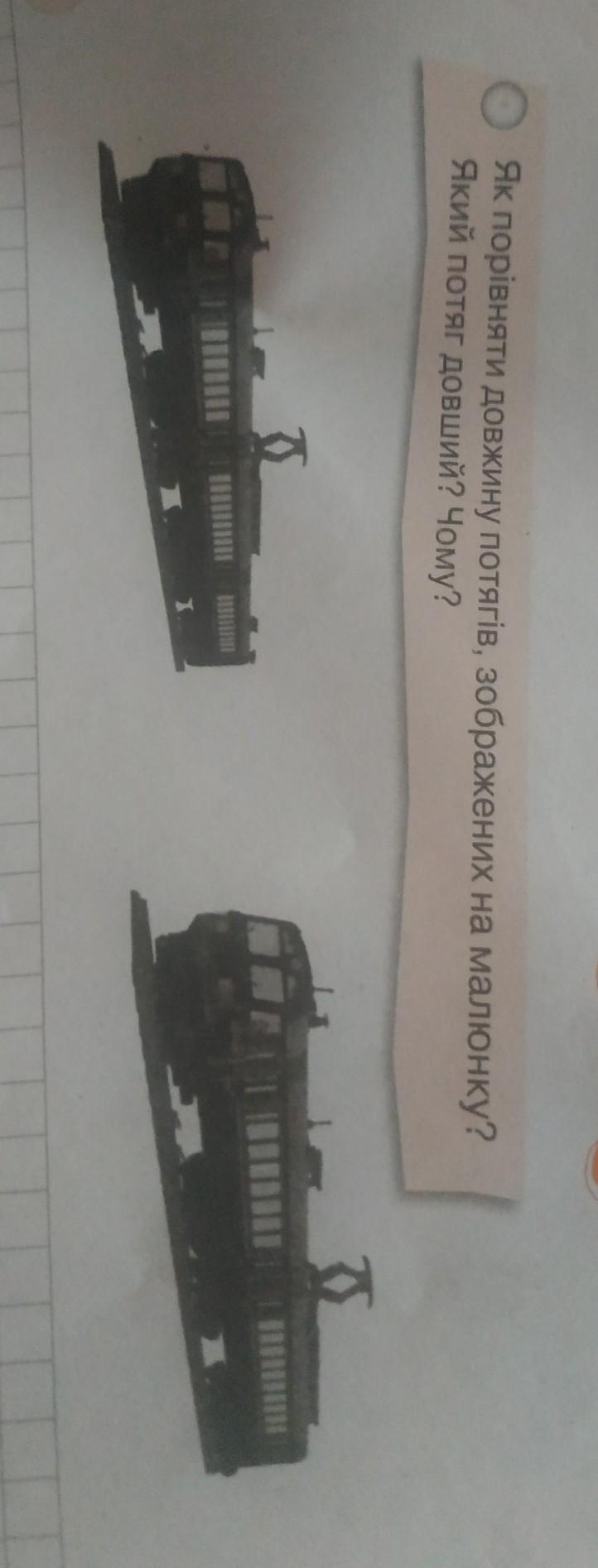 Потяг який зліва довший . Тому , що в нього 3 вагони а у потяга зправа 2 вагони .