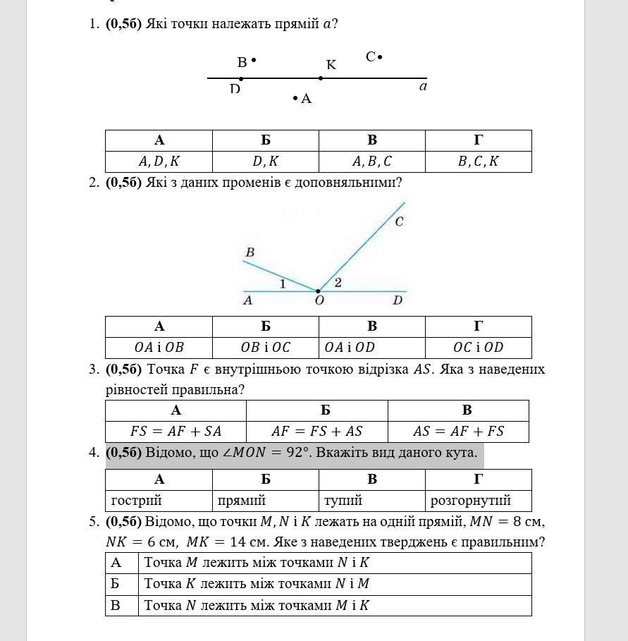 1) Точки D та K на промені а