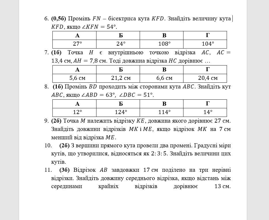 Щодо другої частини запитання, ви не надали відповідних градусних мір кутів. Будь ласка, уточніть дані про градусні міри цих кутів, щоб його розв'язання було можливим.