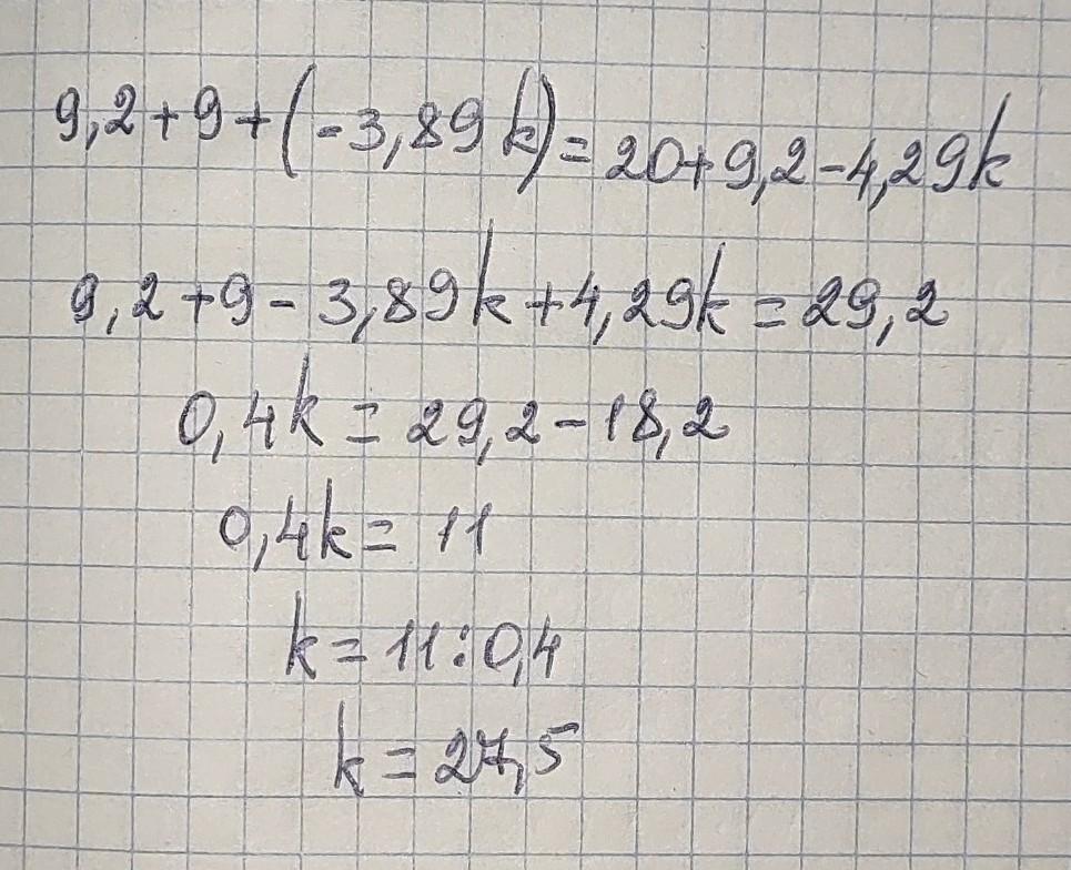9,2+9+(−3,89k)=20+9,2−4,29k
