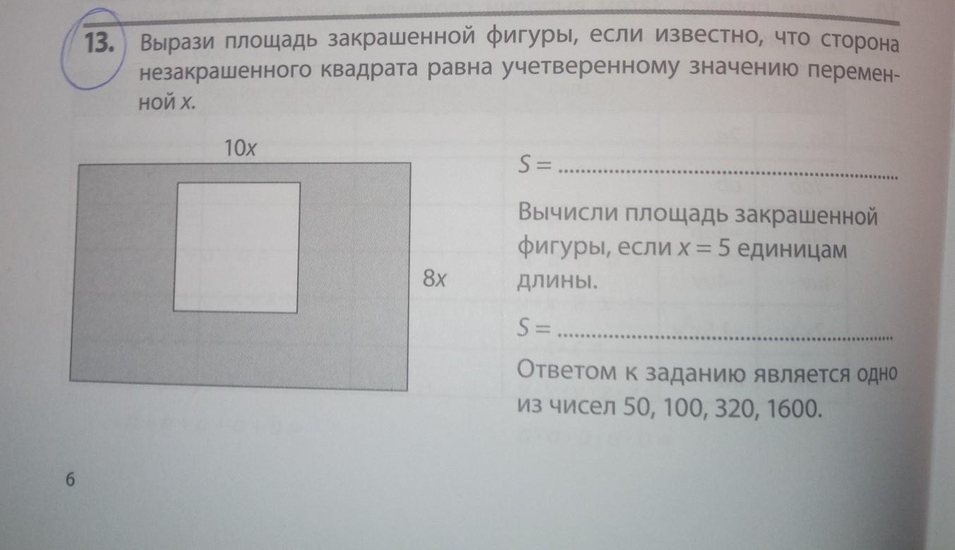 Сторона не закрашенной равна 4х, а тк сказано, что х = 5,то сторона равна 20. Площадь равняется 20*20=400. Площадь закрашенной равно 10*5*8*5= 2000