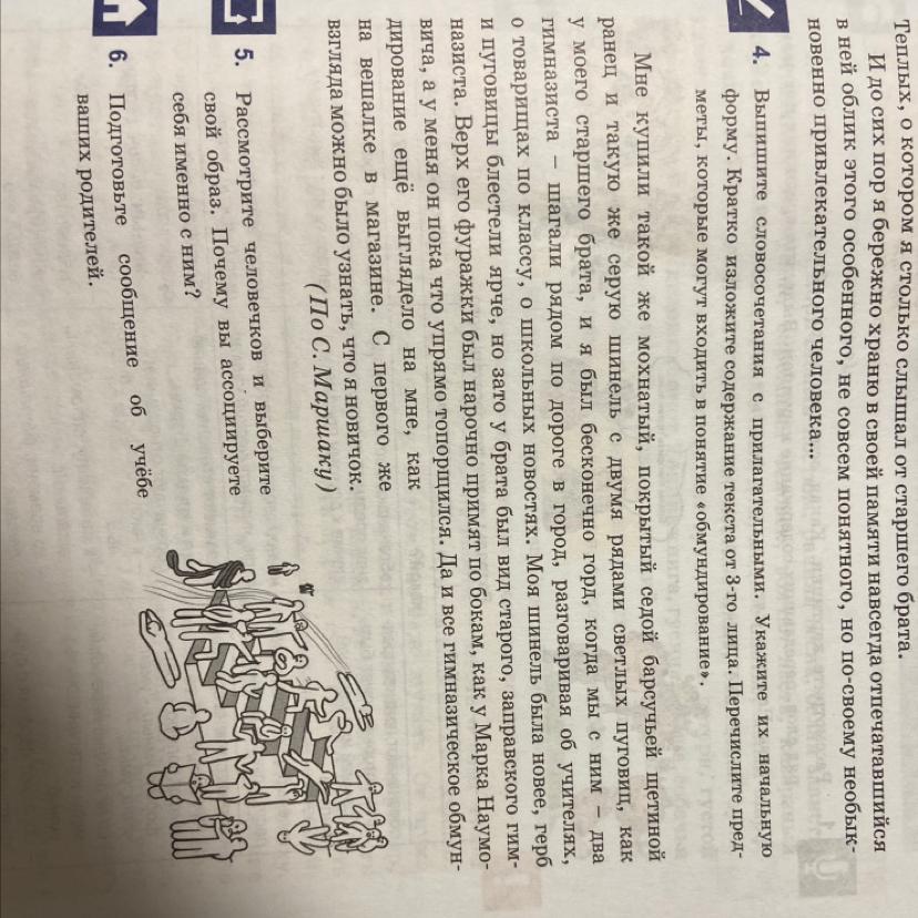 ПОЖАЛУЙСТА помогите!!!! 4.выпишите словосочетания с прилагательными. Укажите их начальную форму. Кратко изложите содержание текста от 3 лица. Перечислите предметы, которые могут входить в понятие «обмундирование». И еще ОБЕЗАТЕЛЬНО надо указать род падеж и тд!!! Дам 25 баллов!!!