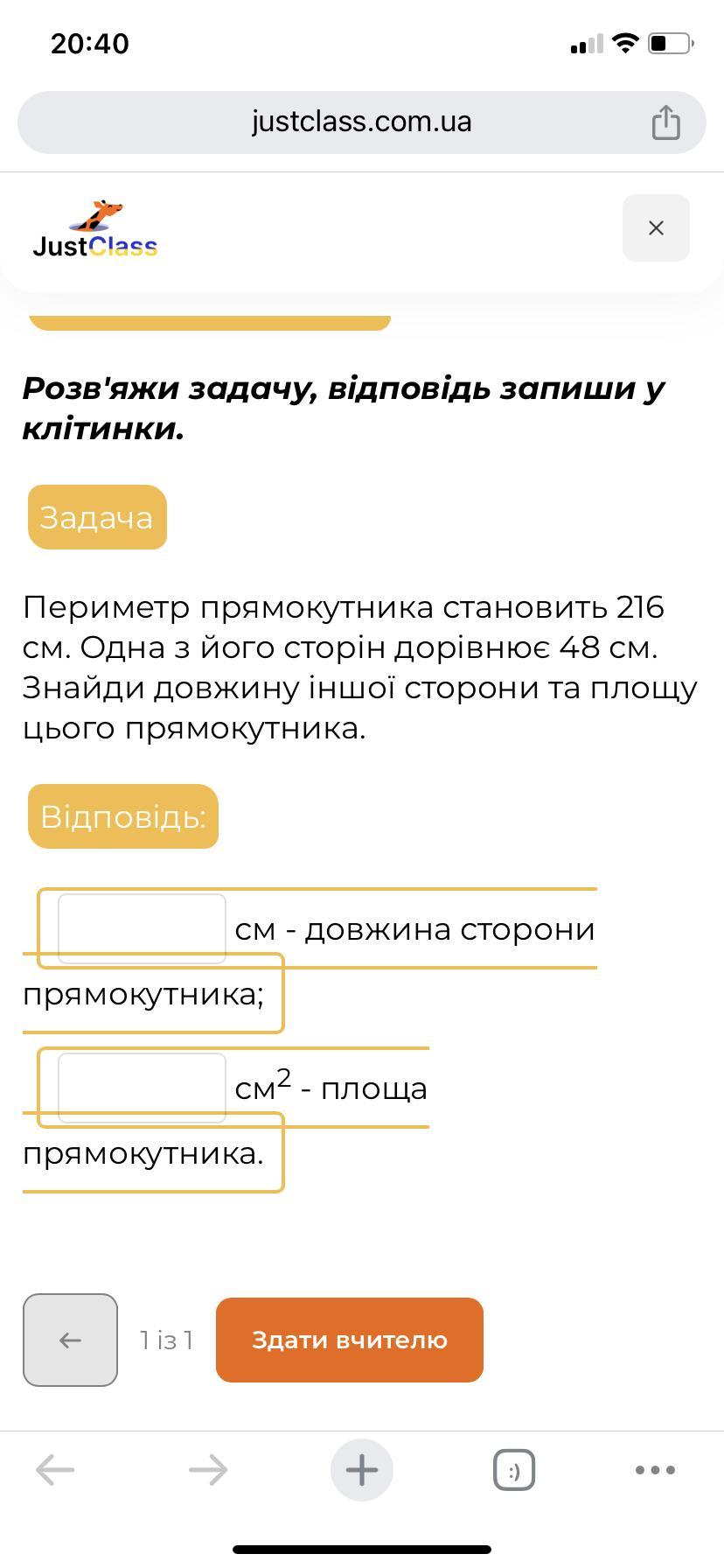 (216-48):2=84см-друга сторона прямокутника