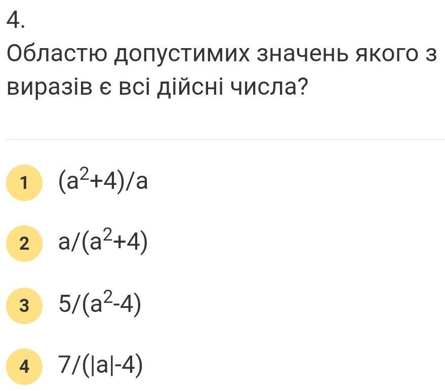 1) не подходит так как если переменная ,,а,, примет значение 0 то дробь не будет иметь смысл ( на ноль делить незя)