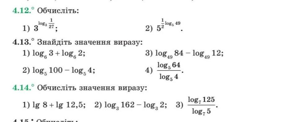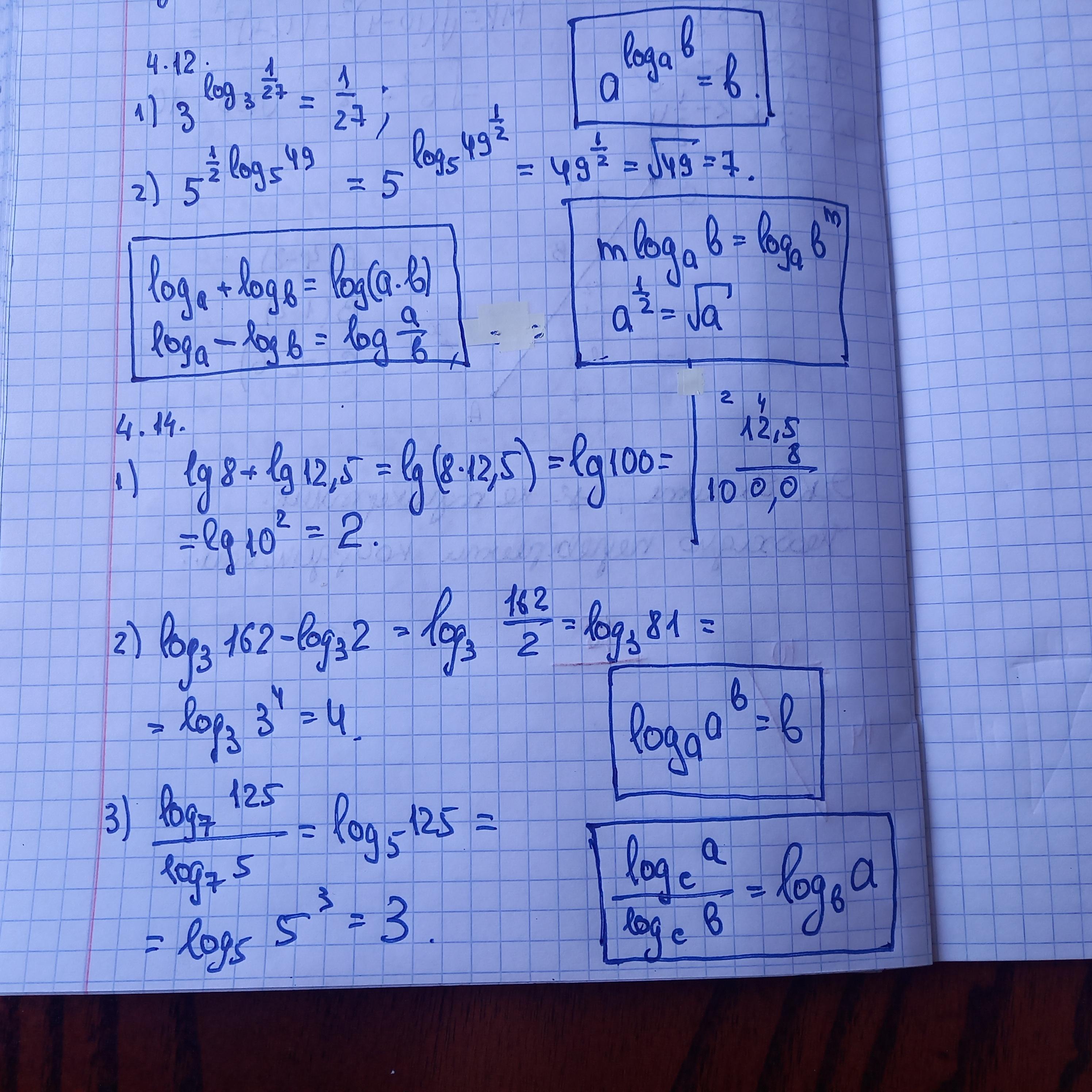 ❗❗ДУЖЕ ПРОШУ, ДОПОМОЖІТЬ БУДЬ ЛАСКА!!!♥️❗❗ мені потрібно здавати до завтра, потрібно повна відповідь зі зображенням, інакше я буду не атестований, бажано на українському мові! не із інтернету підручник A.Г.Мерзляк «Математика 11» рівень стандарту § 1; п 4; с.25; повторити означення логарифма, властивості логарифма; Вправи № 4.12; 4.14