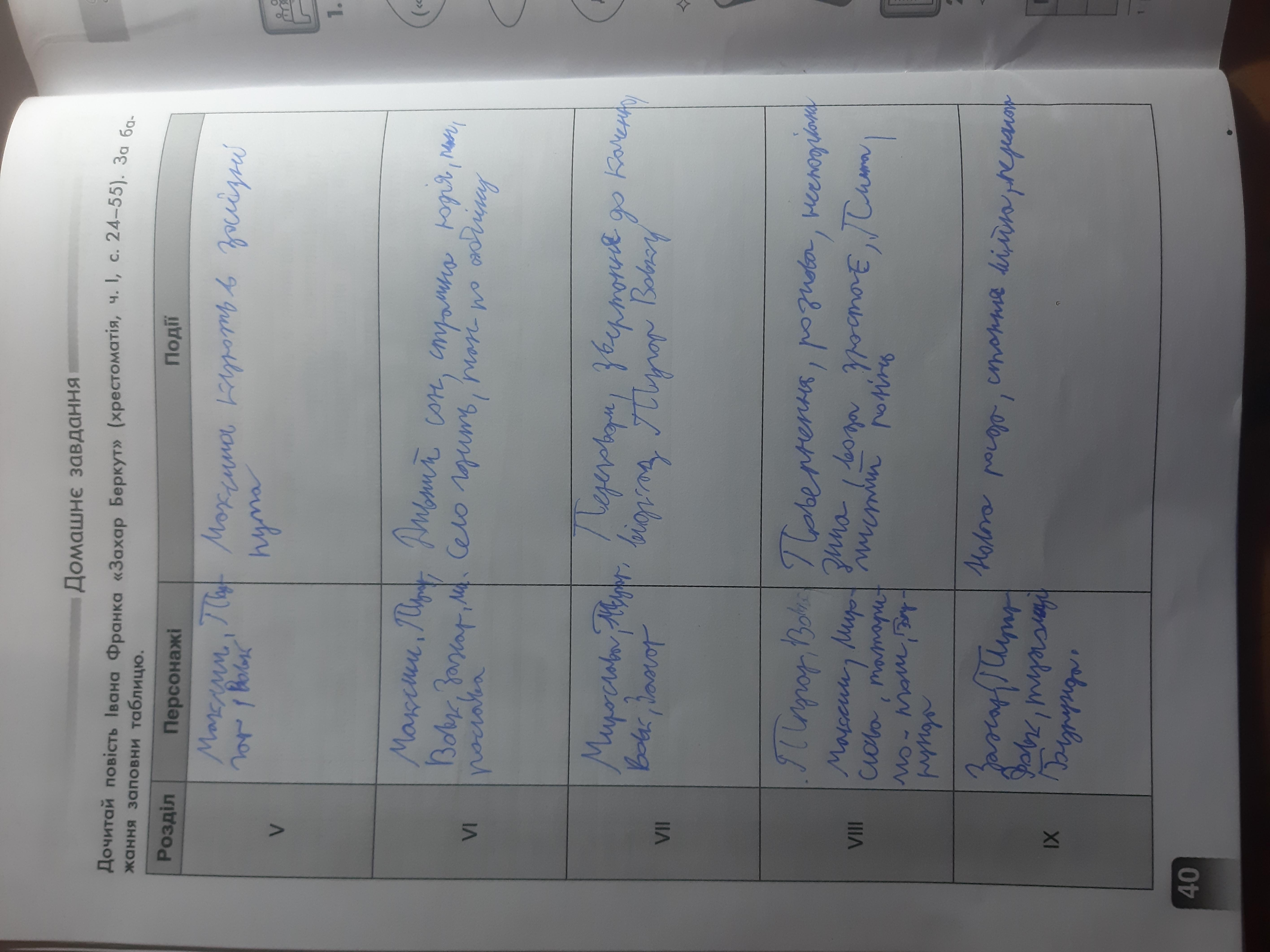 Дочитай повість Івана Франка " Захар Беркут" ( хрестоматія, ч. |, с. 24-55). За бажання заповни таблицю.