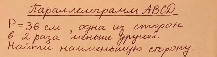 Наименьшая сторона равна х-2=10-2=8(см).