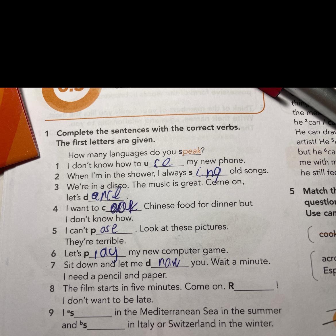 use, sing, dance, cook, photograph, play, draw, Run, swim.... ski