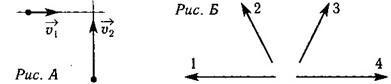 До перехрестя наближаються вантажна машина зі швидкістю 10м / с і легкова машина зі швидкістю 20 м / с (рис. А). Який напрям має вектор швидкості легкової машини в системі відліку вантажівки (рис. Б)?
