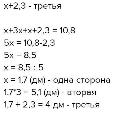 Одна сторона трикутника в 3 рази менша за другу і на 2,3 дм менша за
