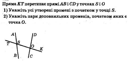 2) OK i OT, доповняльні промені; ОD i OC, доповняльні промені.
