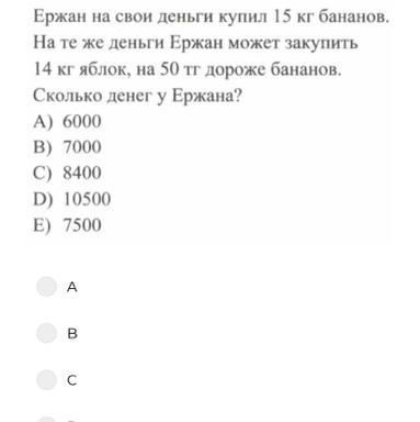 2. За 14 кг яблок (14 * x) Ержан также заплатил, но это стоило на 50 тг больше, чем 15 кг бананов.