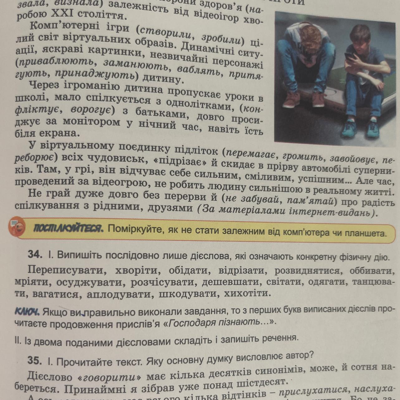 34. І. Випишіть послідовно лише дієслова, які означають конкретну фізичну дію.