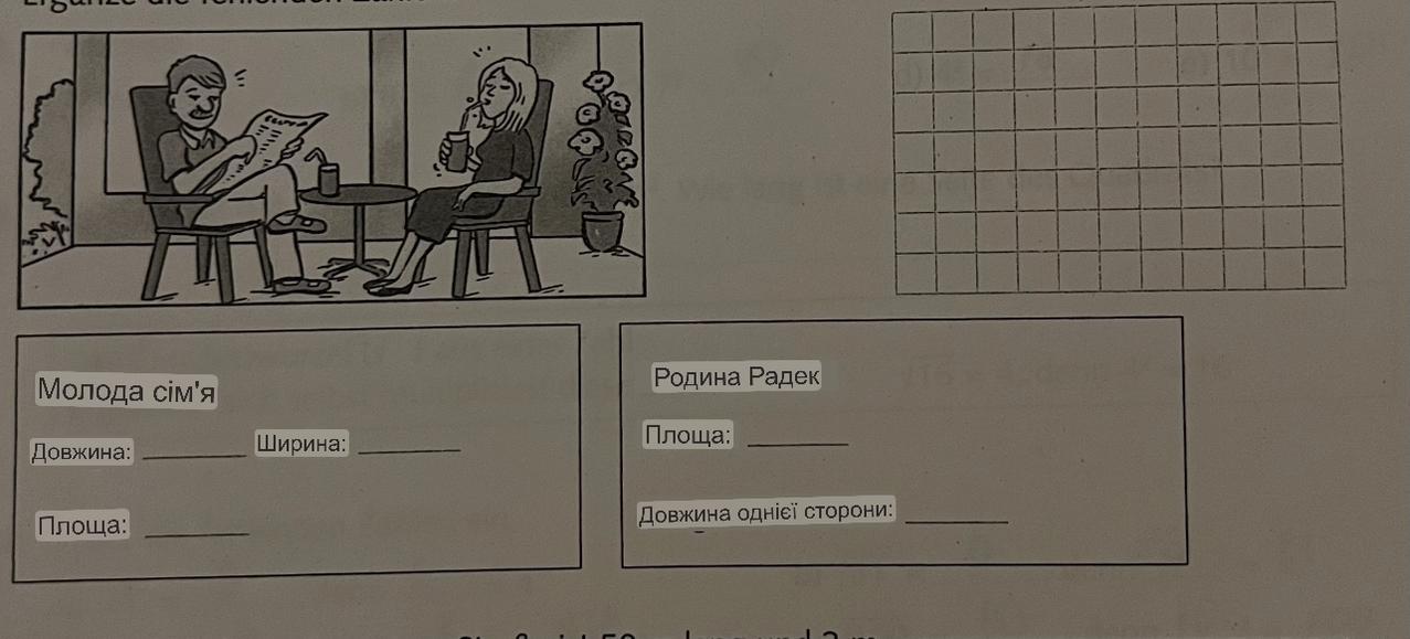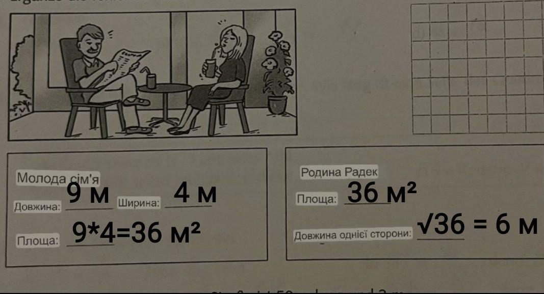 Ця площа такаж сама як і у родини Радек, але у них тераса має форму квадрата. Формула площі квадрата