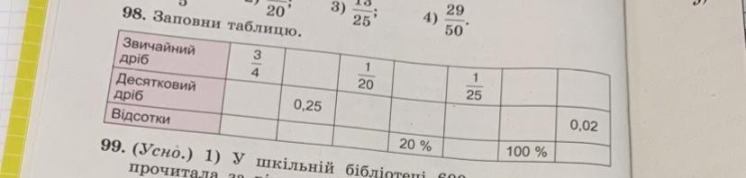 4) 1/5 0.2; 5) 0.04 4%; 6) 100/100 1( это десятковый дробь); 7) 2/100 2%.
