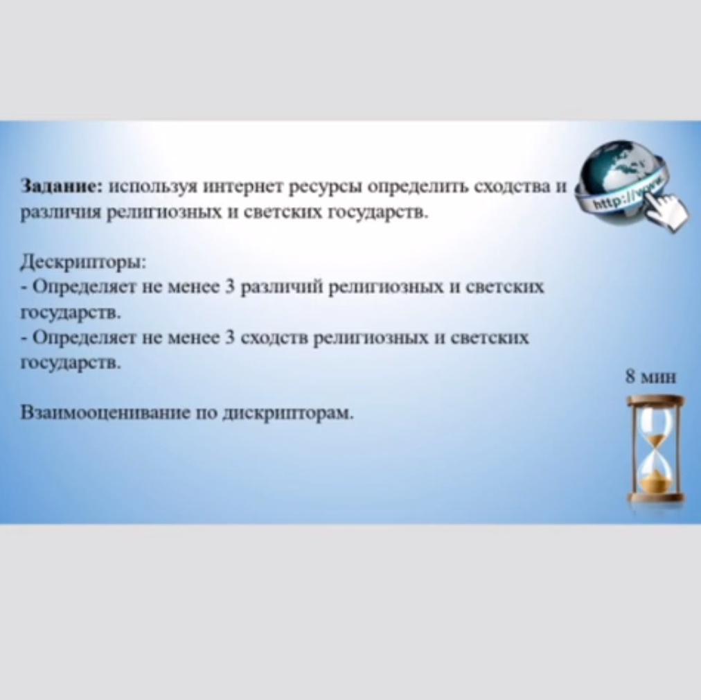 Заданне: используя интернет ресурсы определить сходства и различия религнозных и светских государств.