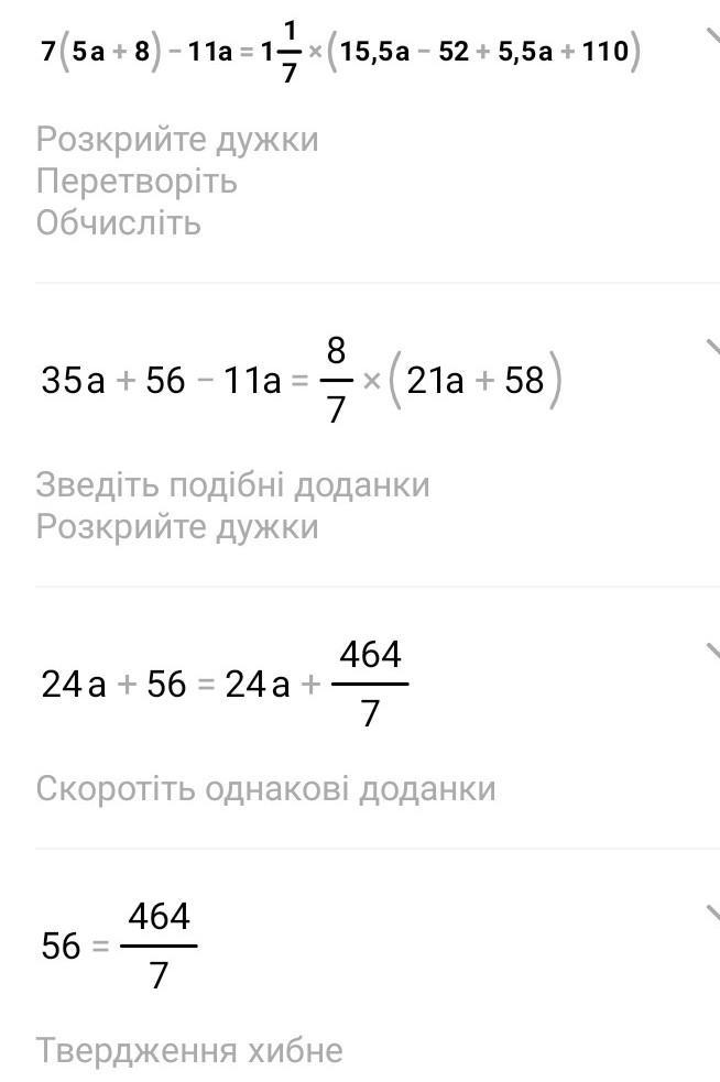 теперь, упрощаем выражение справа: 11/7 * (15, 5a - 52 + 5, 5a + 101)