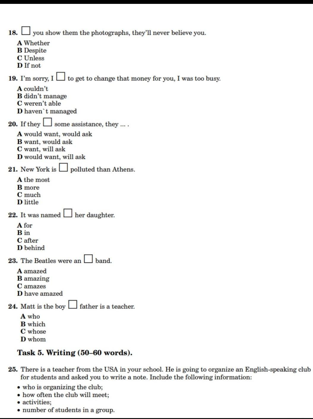 18. d 19. a 20. c 21. b 22. a 23. d 24. d
