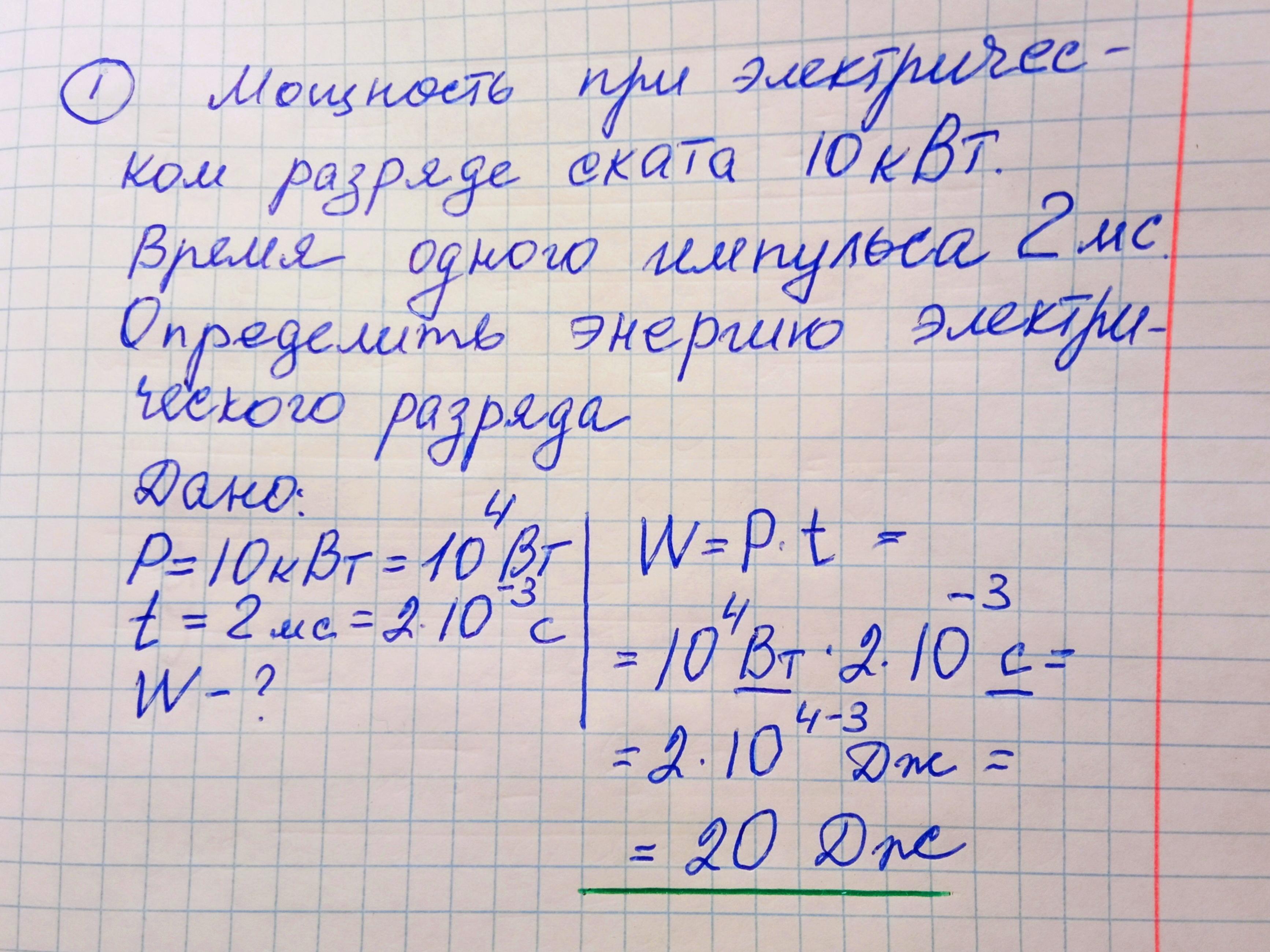 Время одного импульса около 2 мс, миллисекунд. Напряжение 20-600 вольт, сила тока 0,1-50 ампер. Исходим из этого для составления задач.