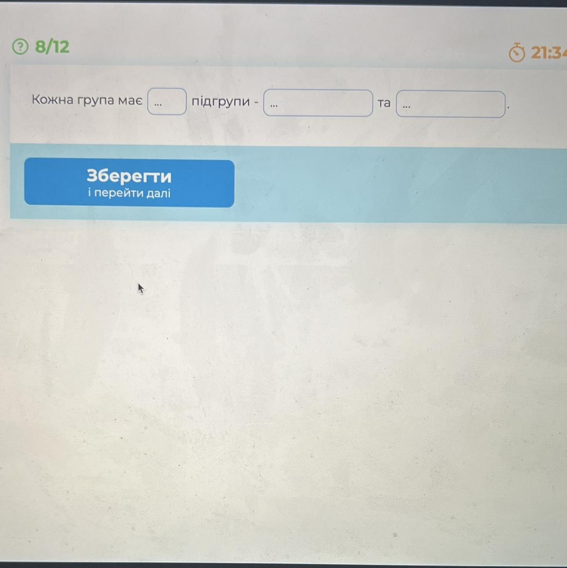 Кожна група має дві підгрупи головну та побічну