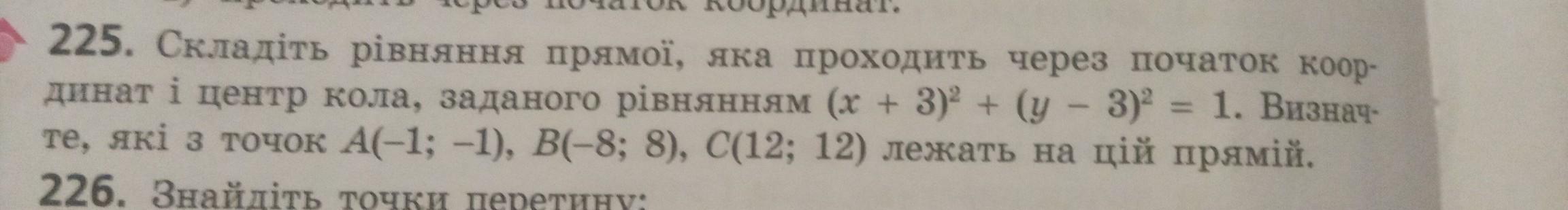 Рівняння прямої, яка проходить через початок координат і центр кола, можна записати у вигляді: