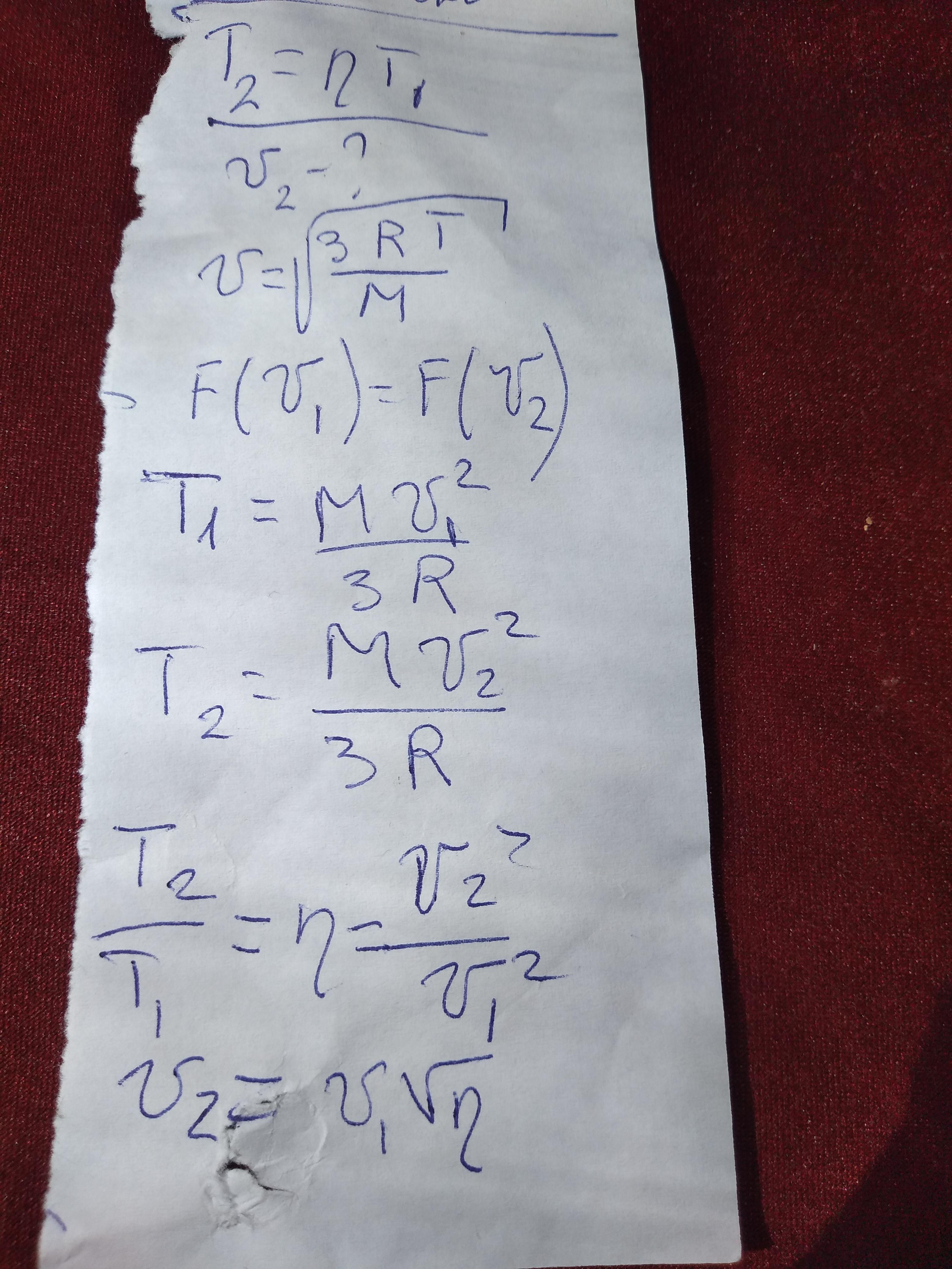 Визначити швидкість v молекул азоту, при якій значення функції F (v) для температури , буде таким же, як і для температури, в η разів більшою.Допоможіть будь ласка