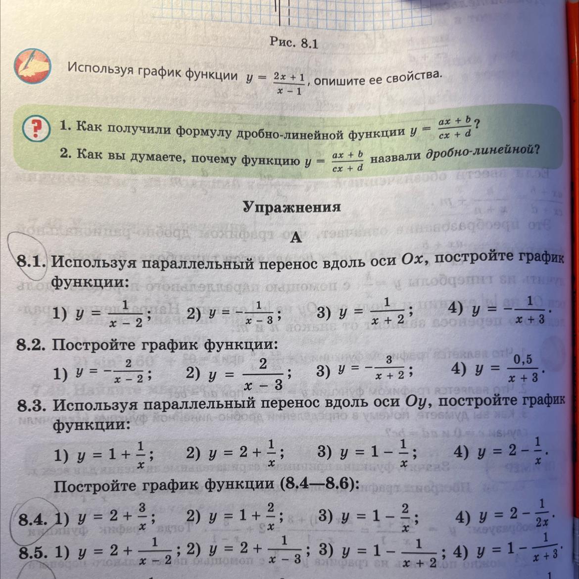 1) y=1+1/x; 2)y=2+1/x; 3)y=1-2/x; 4)y=2-1/x