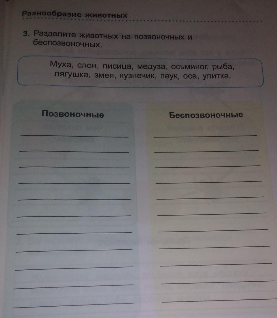 Позвоночные: Слон, лисица, рыба, лягушка, змея,