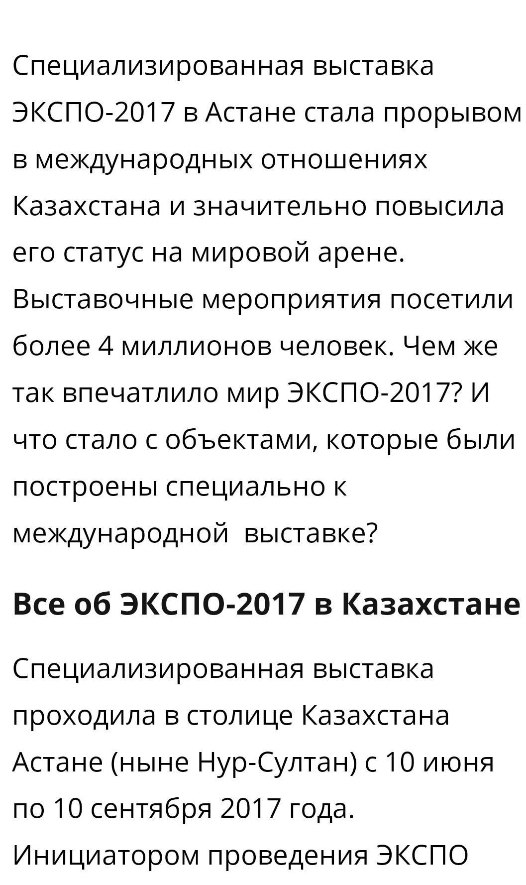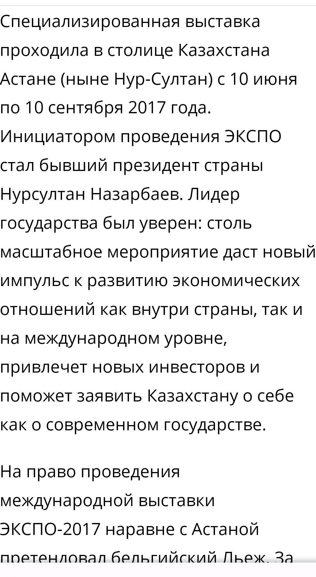 Тааак вот ответ: Ең бастысы, даму бағытын айқындап берді. Осындай көшелі істердің жалғасы ретінде Қазақстан EXPO-2017 көрмесін өткізу құқығына ие болдық.