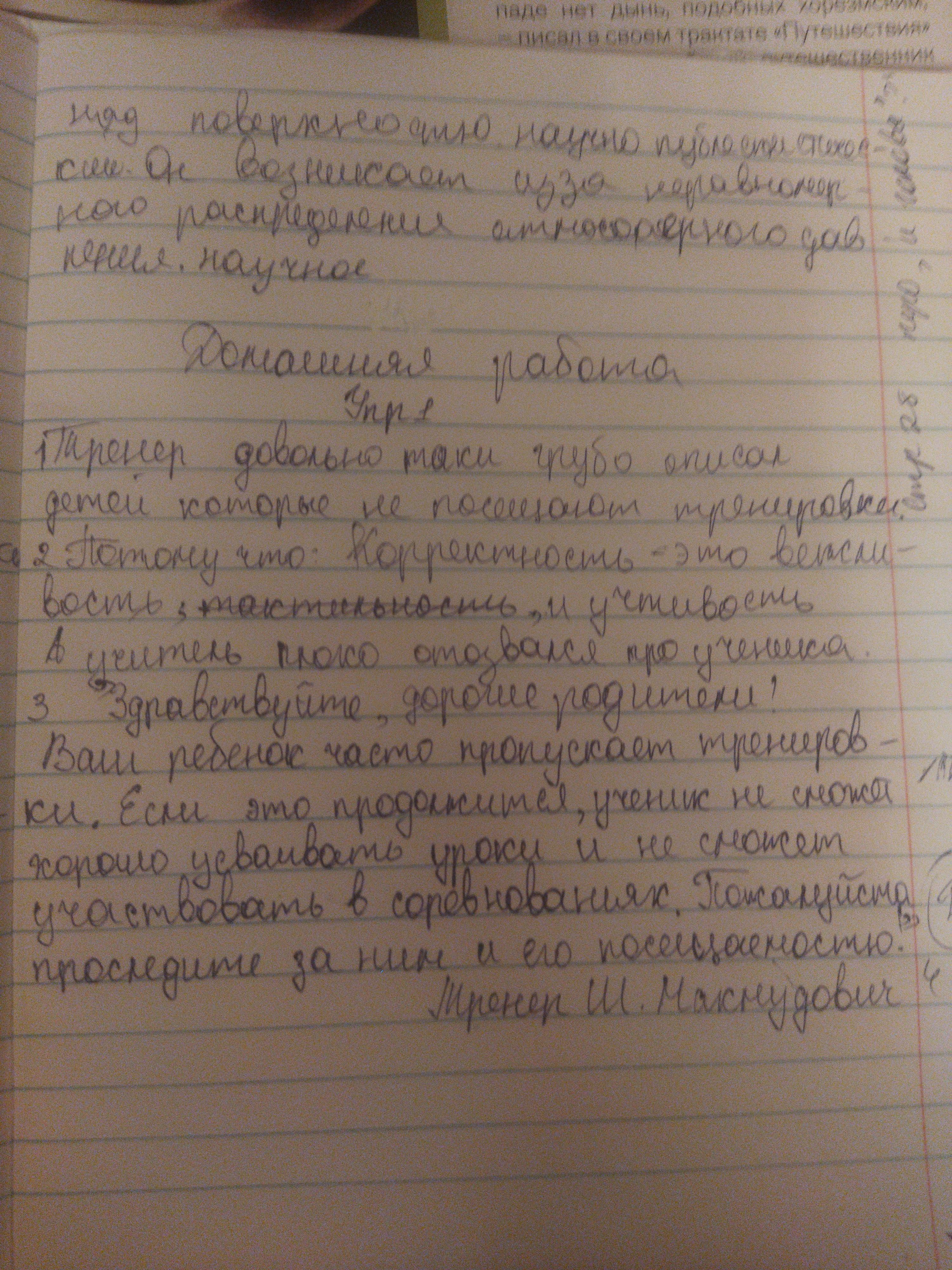 Прочитайте записку от учителя спортивной школы родителям и внизу ещё вопросы после текста
