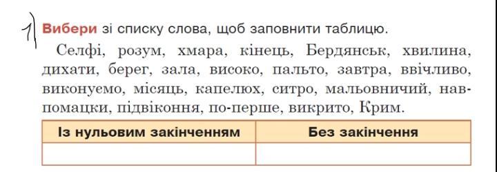 Без закінчення: хвилина, зала, високо, чемно, виконуємо, мальовнича, викрита,завтра