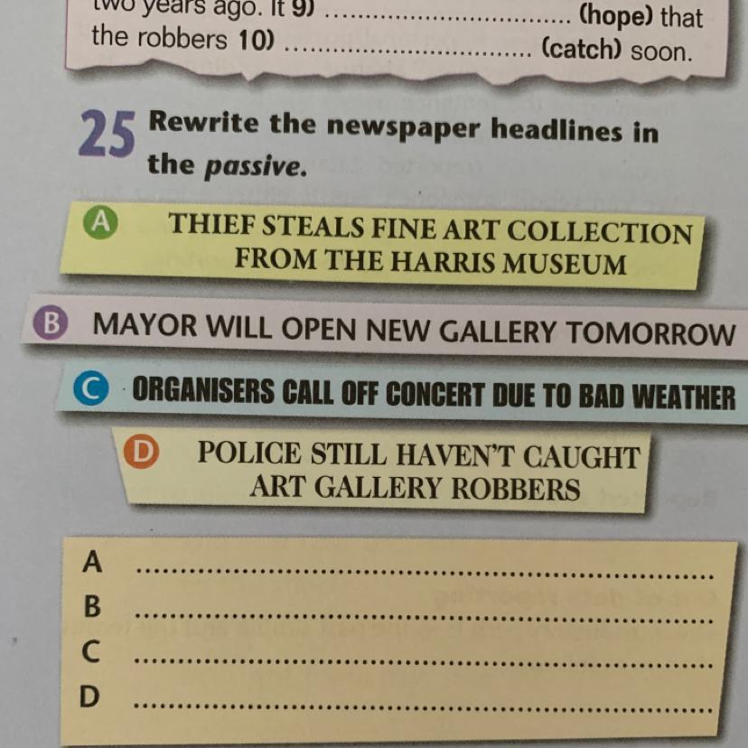 25 Rewrite the newspaper headlines in