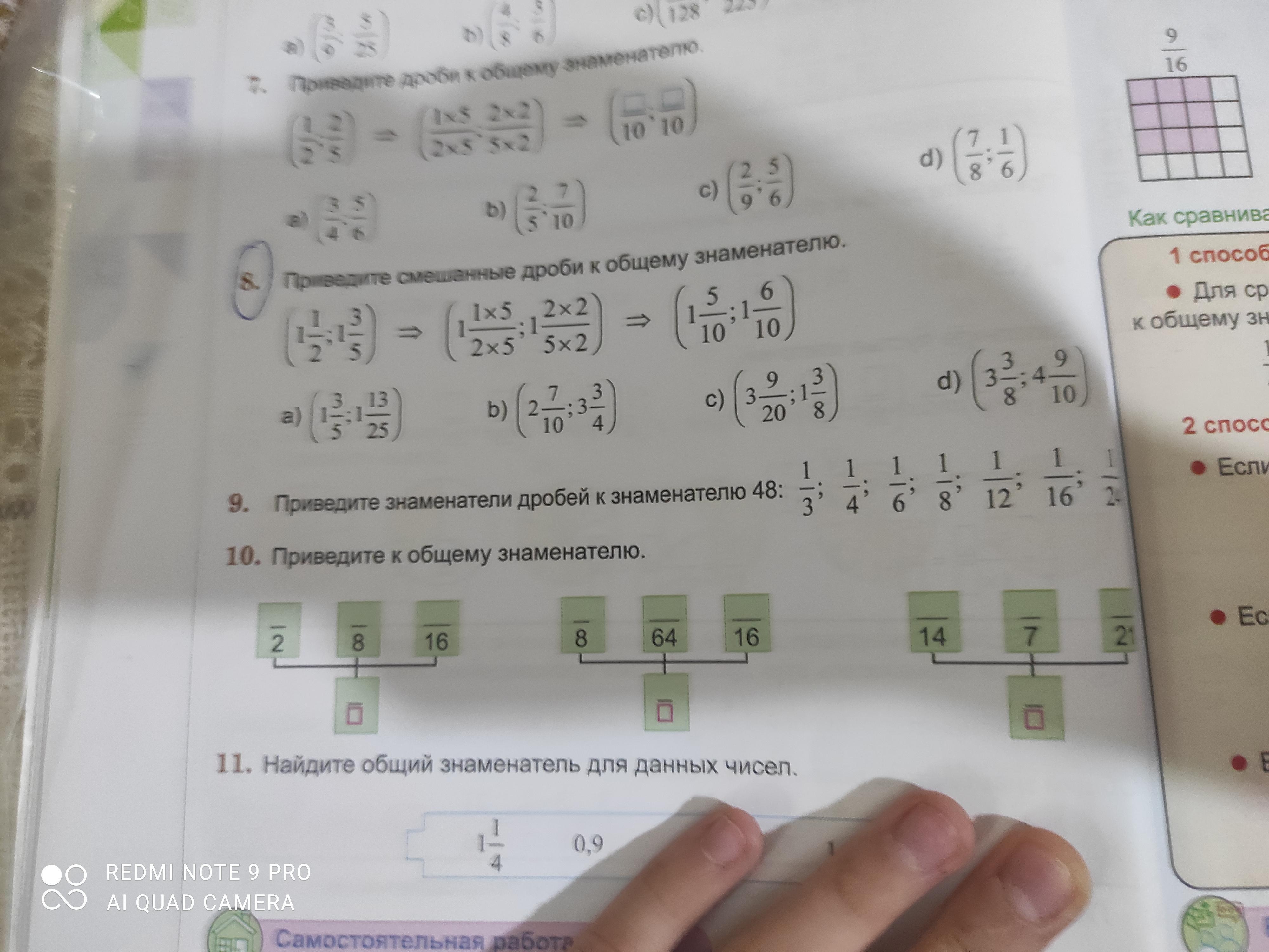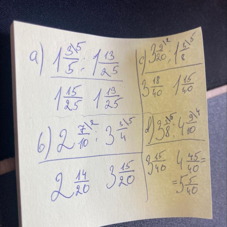 (3 3/8; 4 9/10) => (3 (3*5)/(8*5); 4 (9*4)/(10*4) ) =>