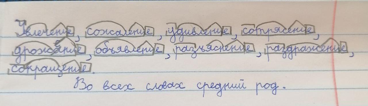 Увлечение, сожаление,удивление,сотрясение,дрожание, объявление ,разъяснение,раздражение,сокращение