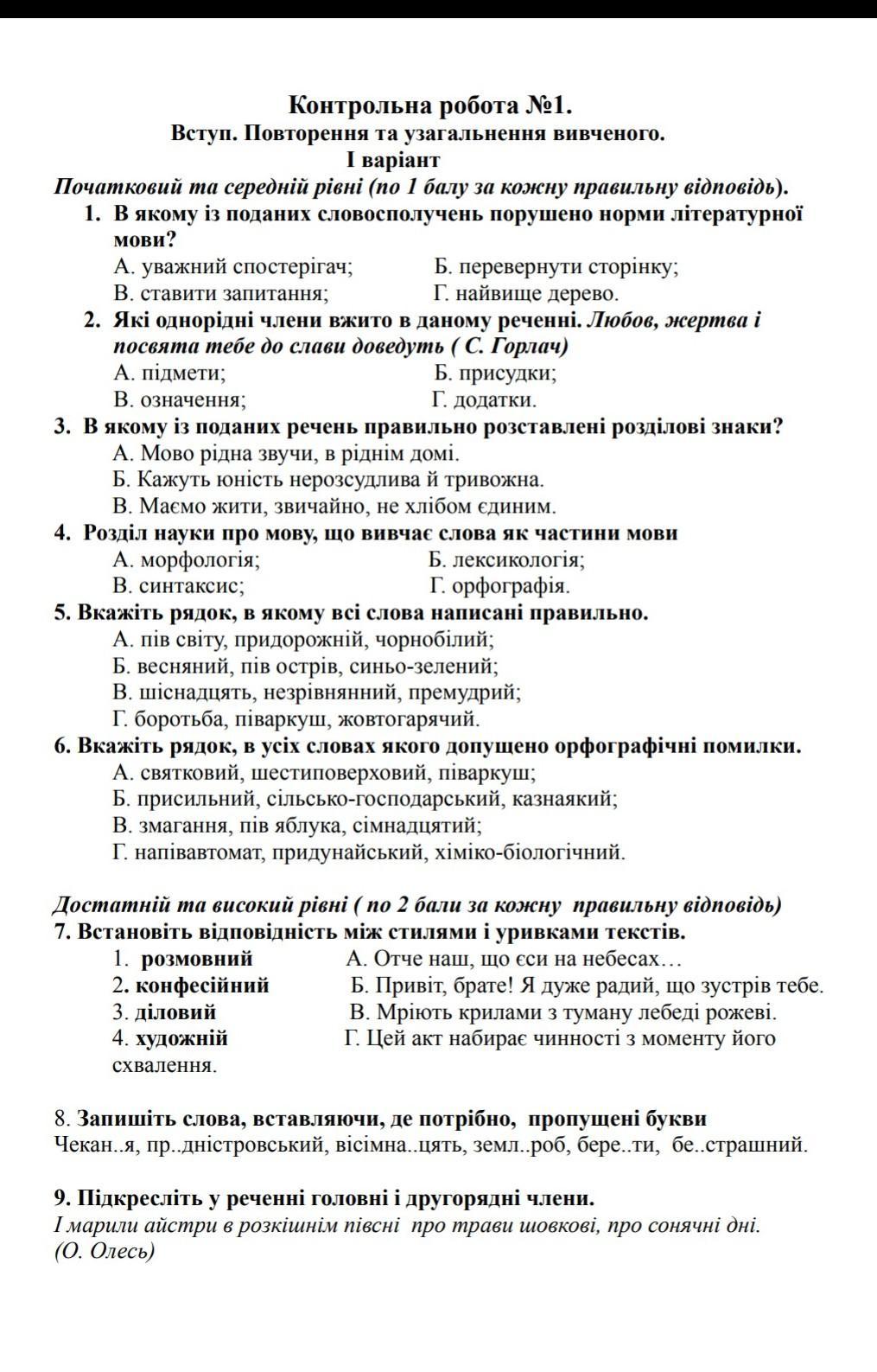 5. Вкажіть рядок, в якому всі слова написані правильно.