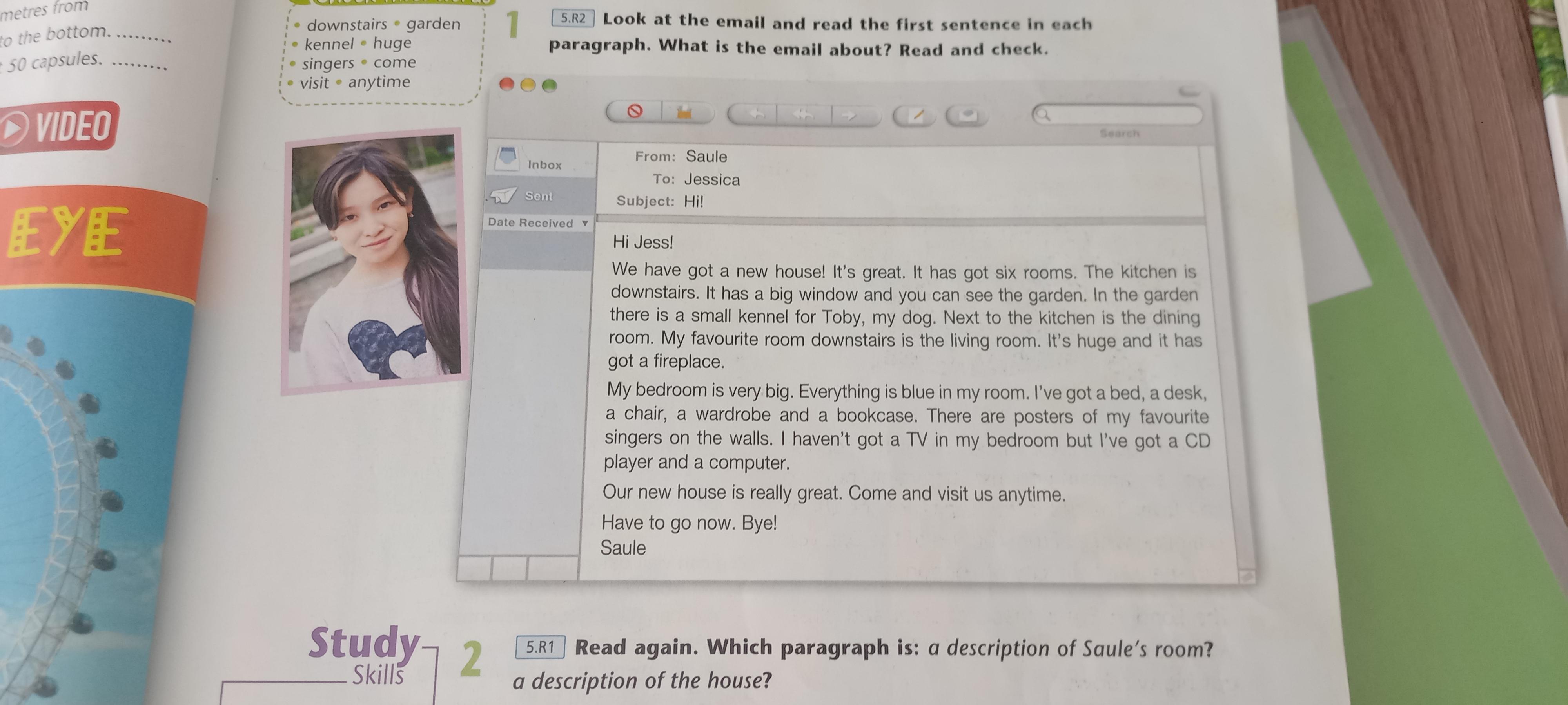 Объяснение:в 3 абзаце описывается как выглядит ее комната об этом говорят строчки my bedroom is very big. Everything blue in my room.Во 2 абзаце про ее дом аналогично с 3.вот строчки к примеру:we have got a mew house.надеюбсь полезно.
